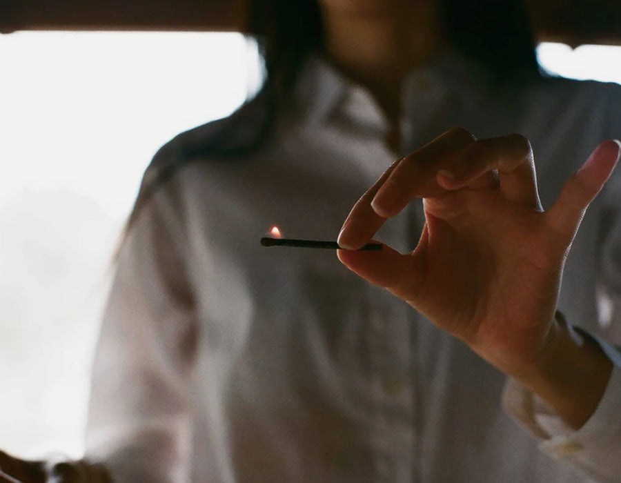Deze verpakking bevat 8 lucifers en een niet-ontvlambare mat. Hij past gemakkelijk in uw handpalm en de wierook kan worden aangestoken zonder dat u een aansteker nodig hebt. We raden aan om de meegeleverde ontvlambare mat te gebruiken, zelfs als u deze combineert met een keramisch bord zoals wij doen.