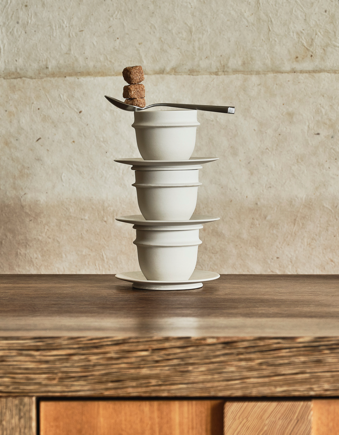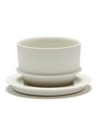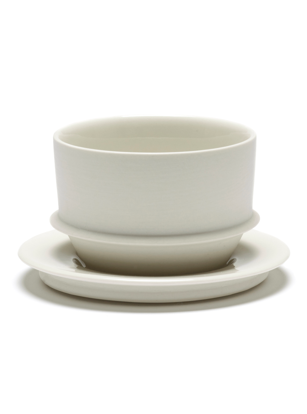 Coffee Cup Alabaster Dune (incl. schoteltje) van de Amerikaanse top interior designer Kelly Wearstler is een verfijnde knipoog naar oud Grieks aardewerk. Door met twee afwerkingen te spelen - mat en hoogglans – komen de sculpturale vormen van de porseleinen borden en schalen nog beter tot hun recht. De uitgelijnde details binnen de vorm zelf zorgen voor opvallende volumes en harmonieuze composities.